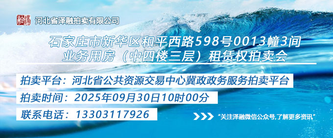 • 石家莊市新華區(qū)和平西路598號0013幢3間業(yè)務用房(中四樓三層)租賃權(quán)拍賣公告20250930 2025-09-23