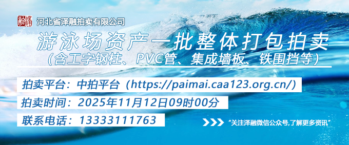 • [拍賣公告]游泳場資產(chǎn)一批(含工字鋼柱、PVC管、集成墻板、鐵圍擋等)整體打包拍賣20251112 2025-11-04